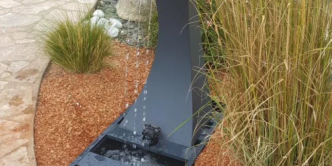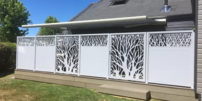 Portail coulissant, remplissage tôle et habillage décoratif inox brossé